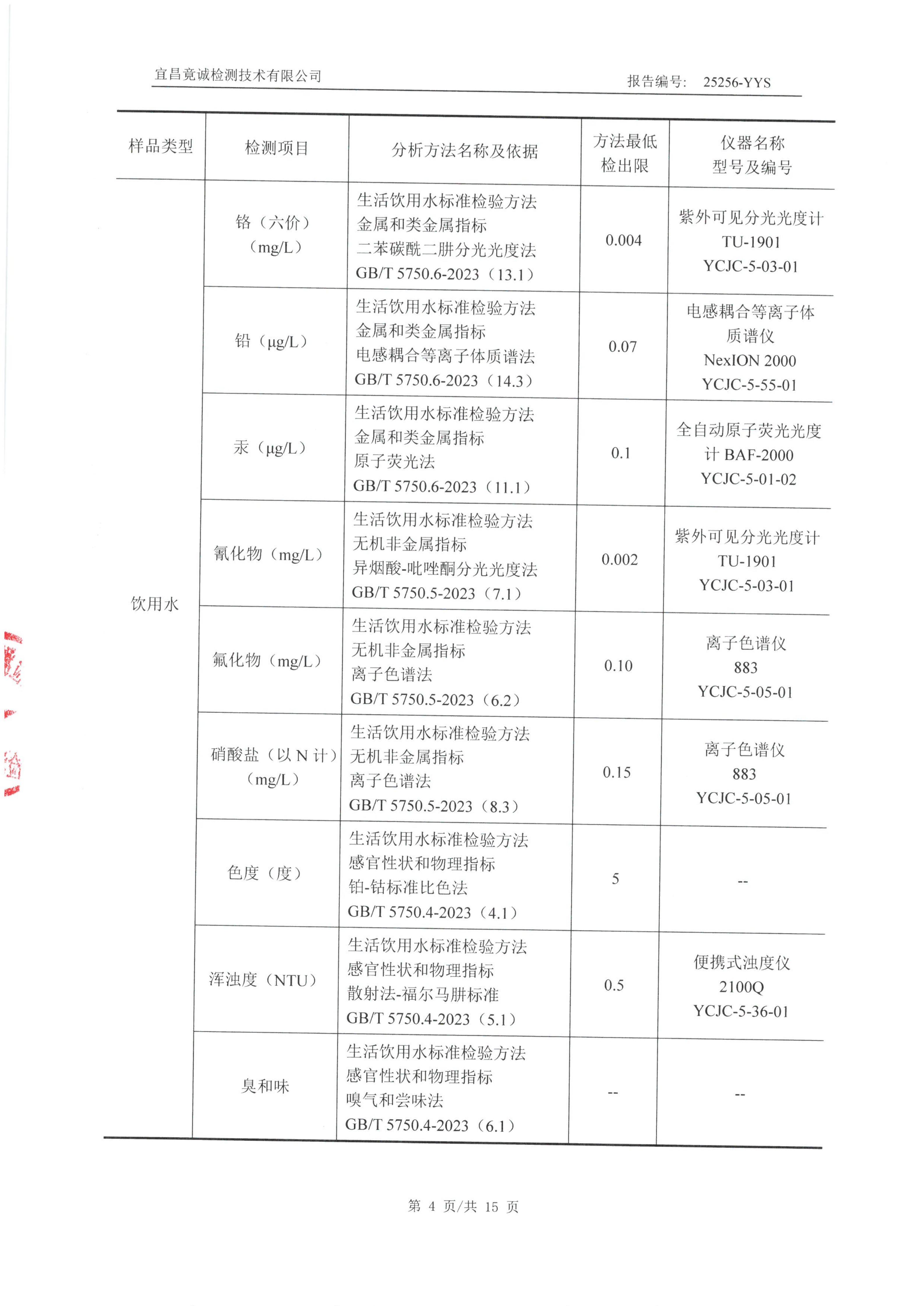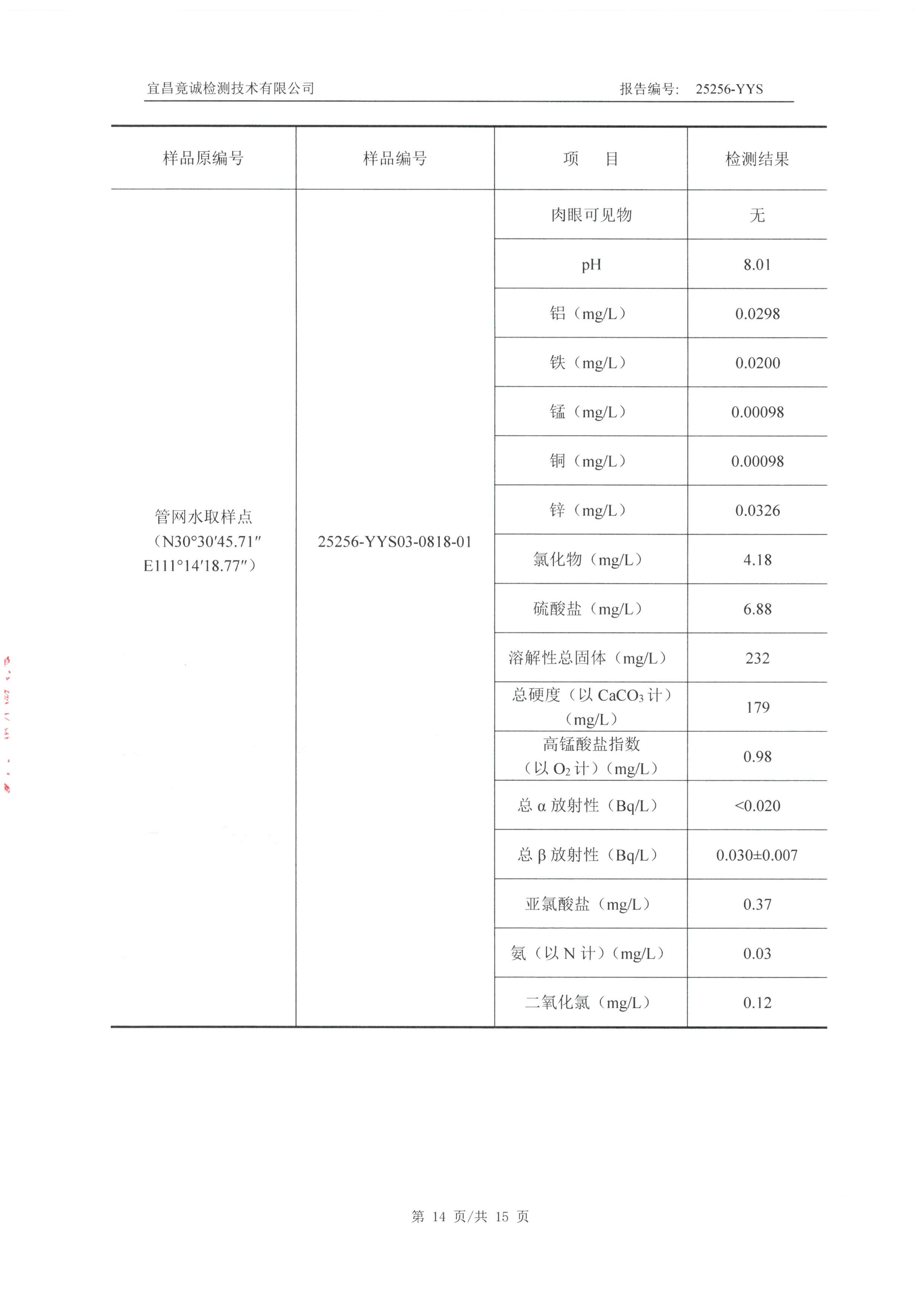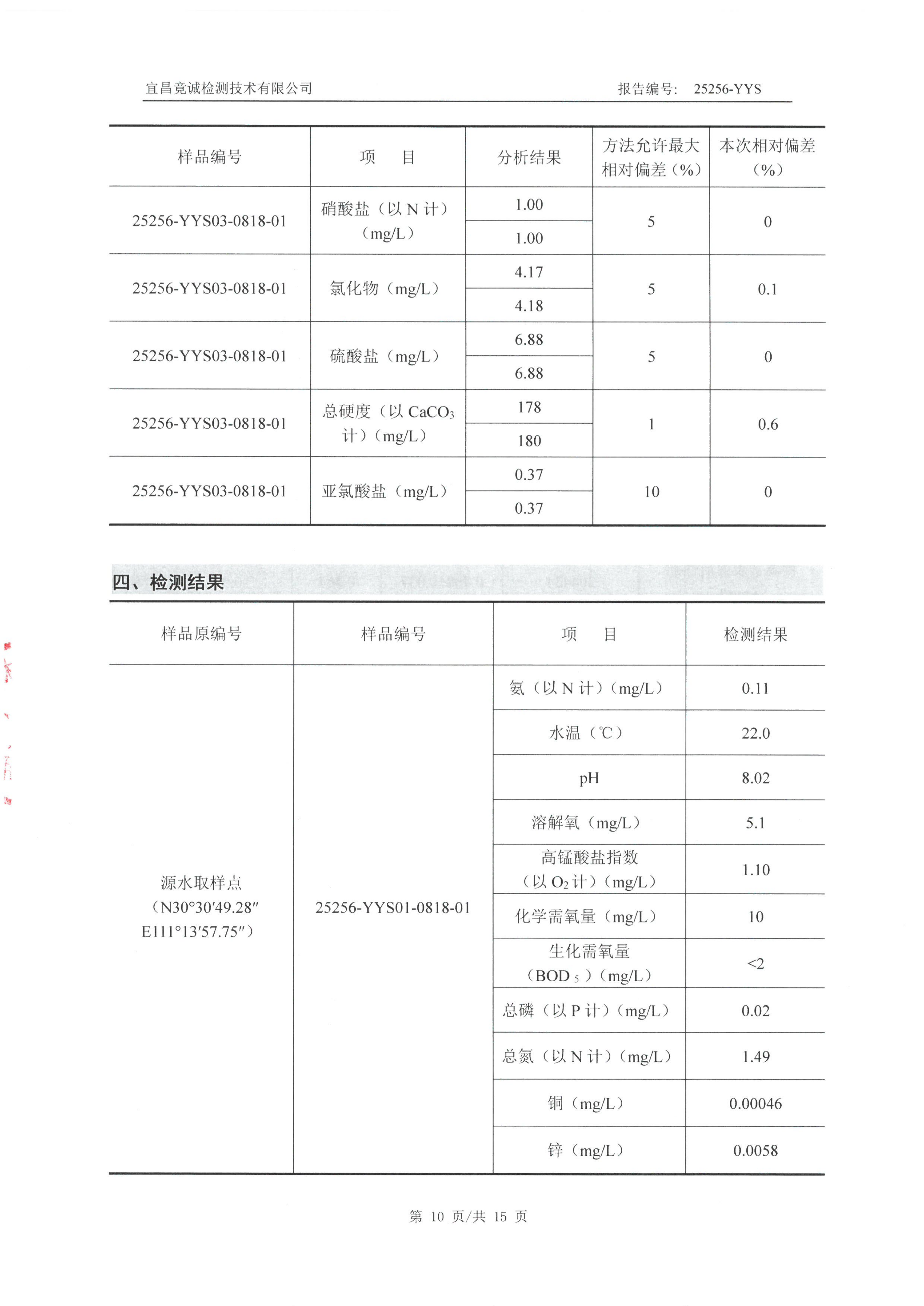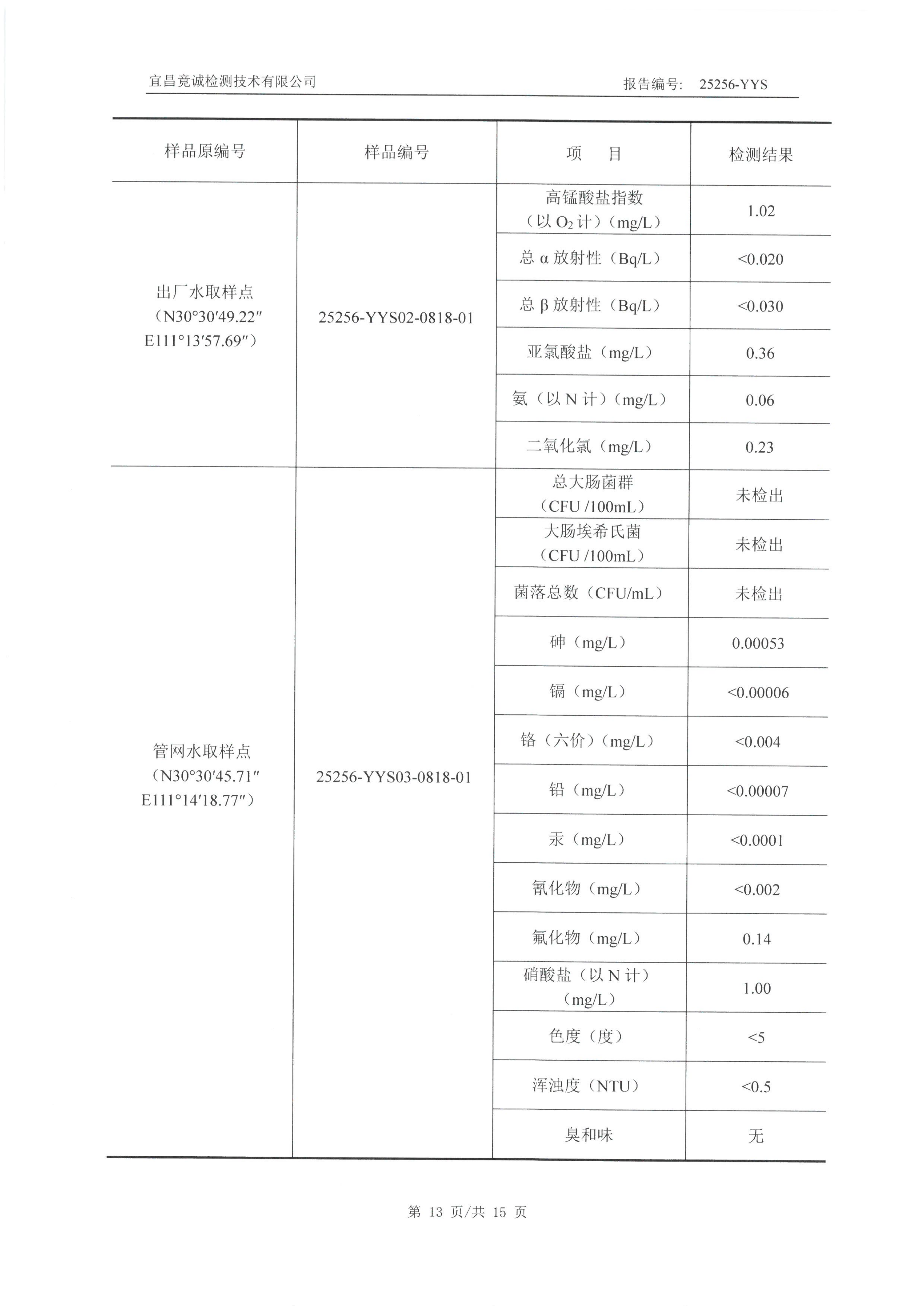 蓋屋嶺水廠9月水質(zhì)檢測報告