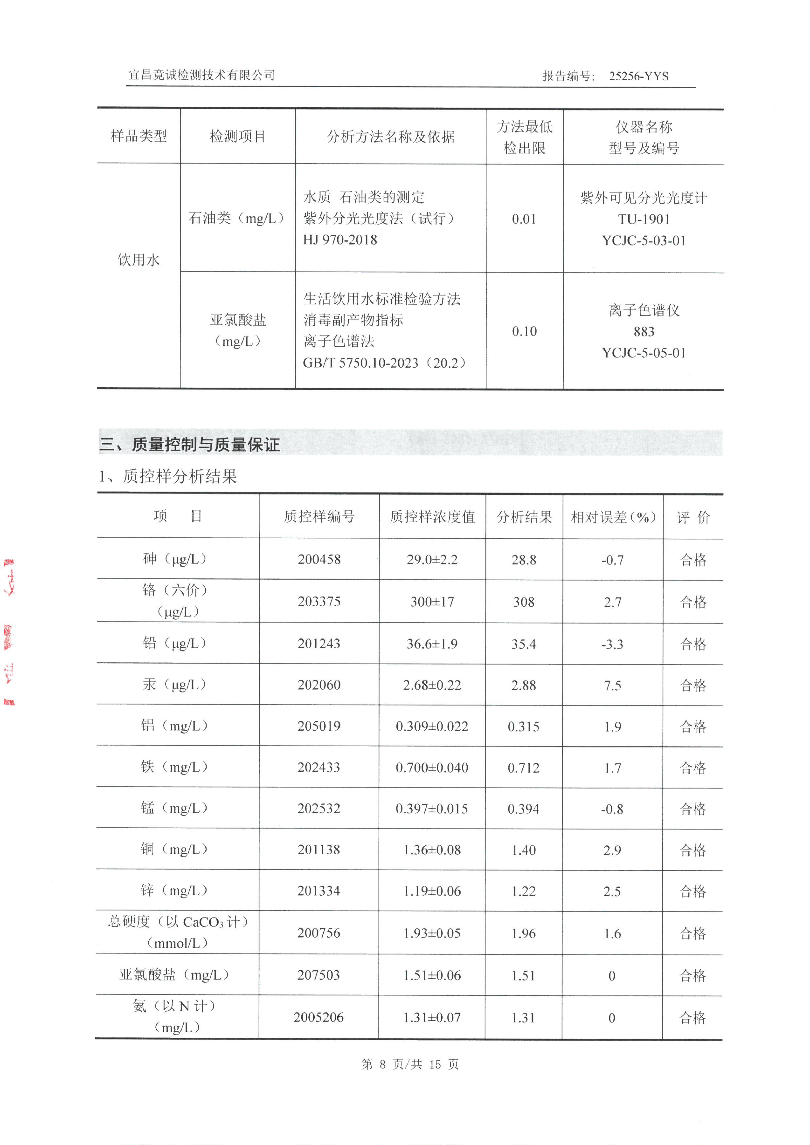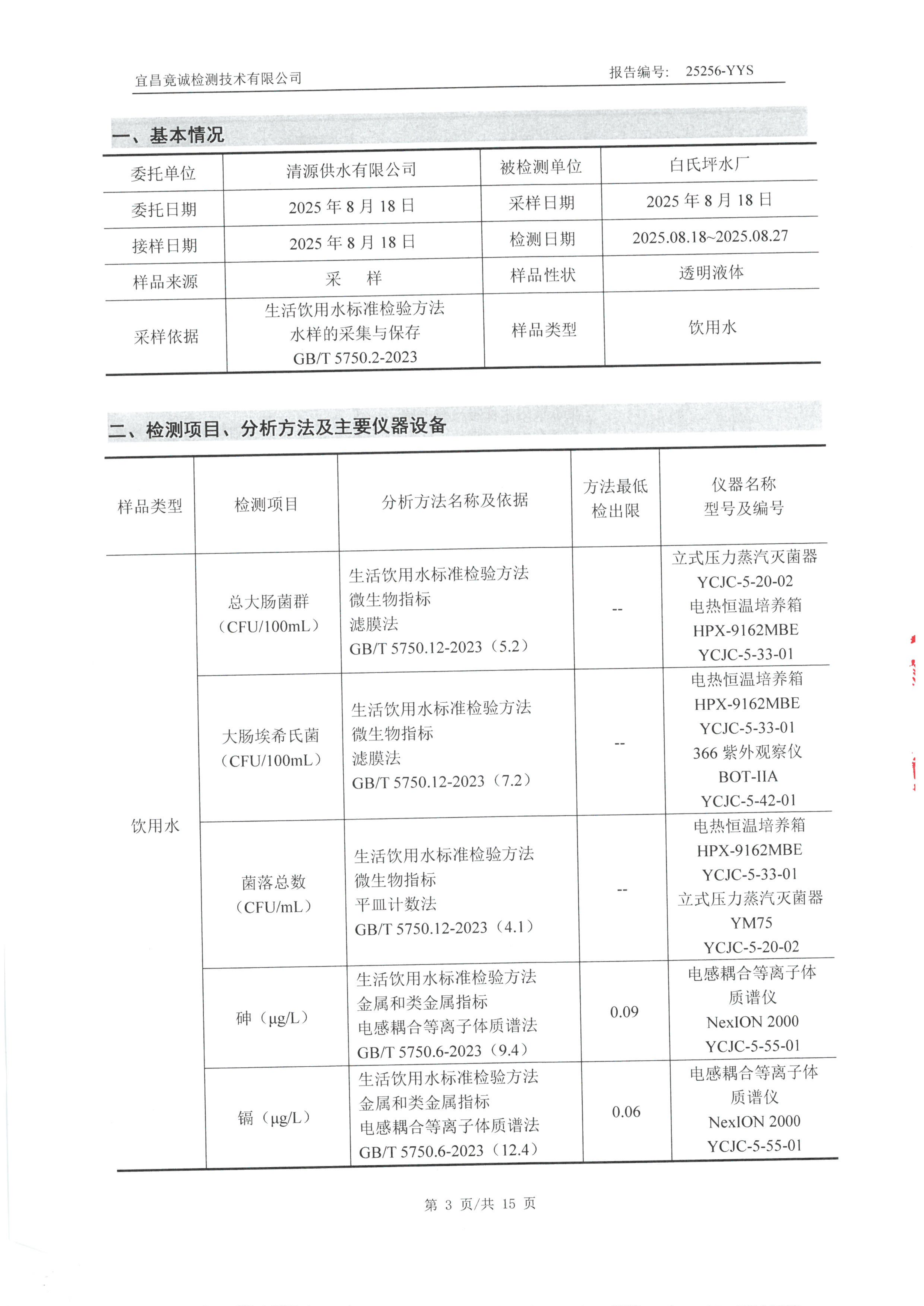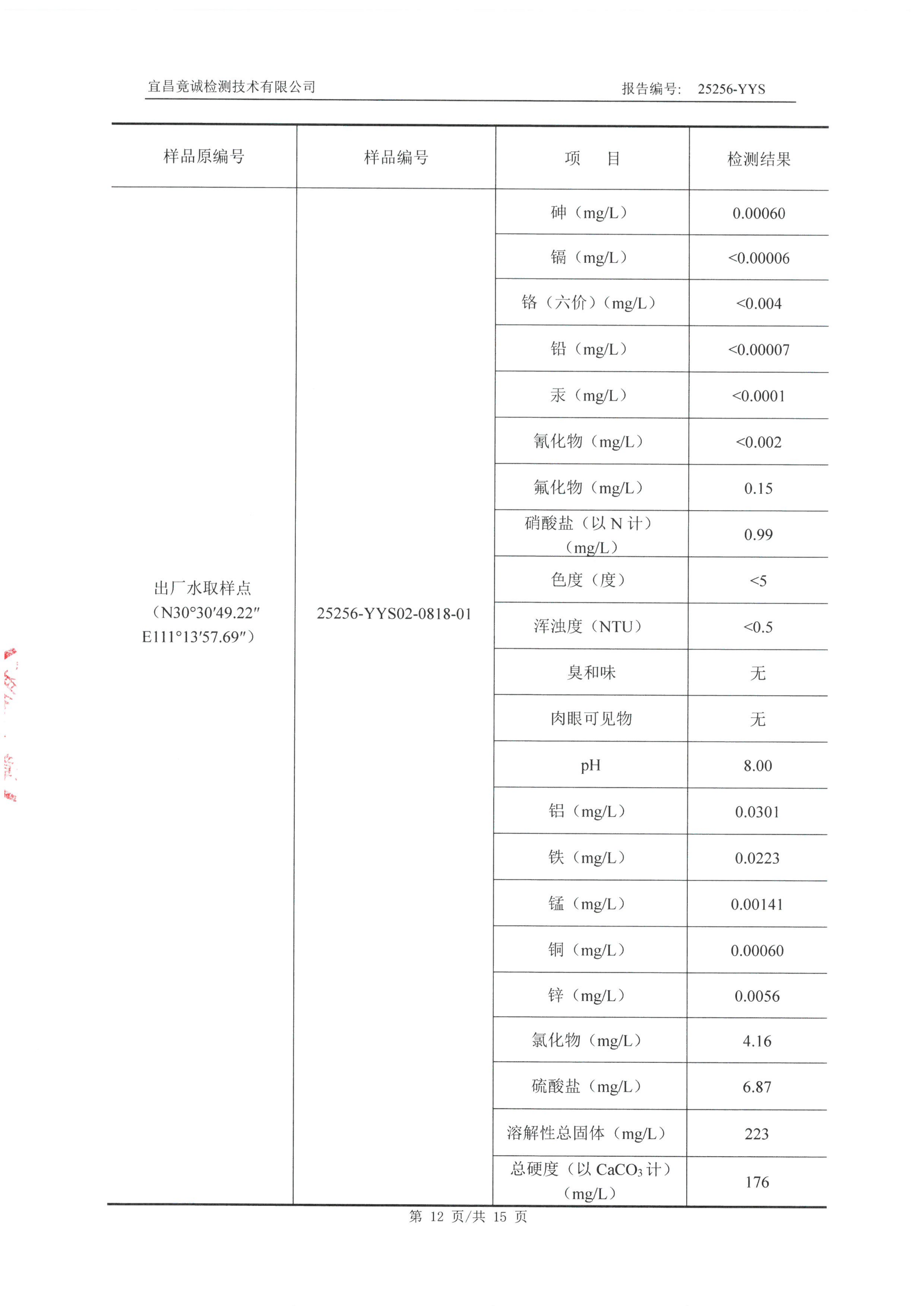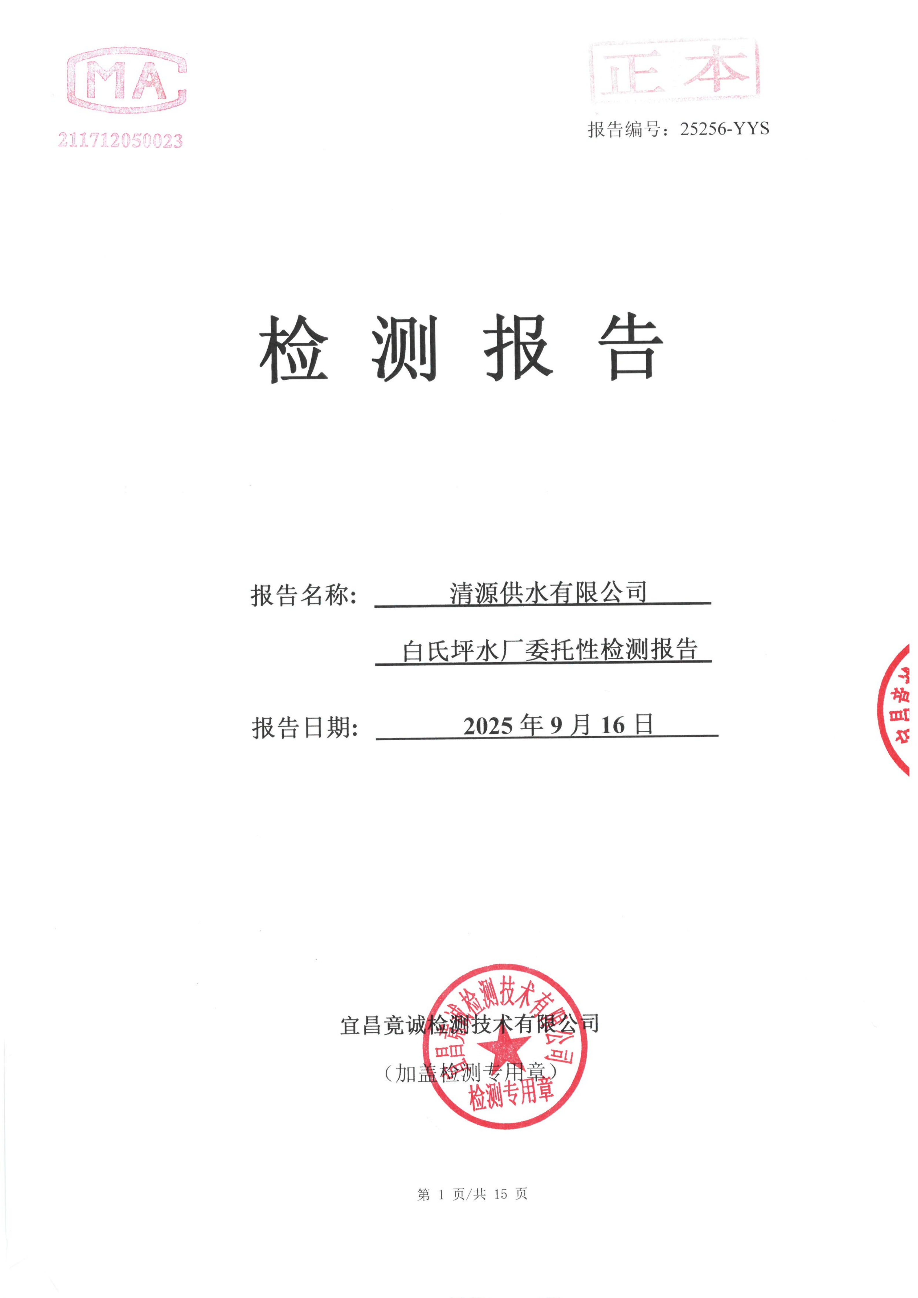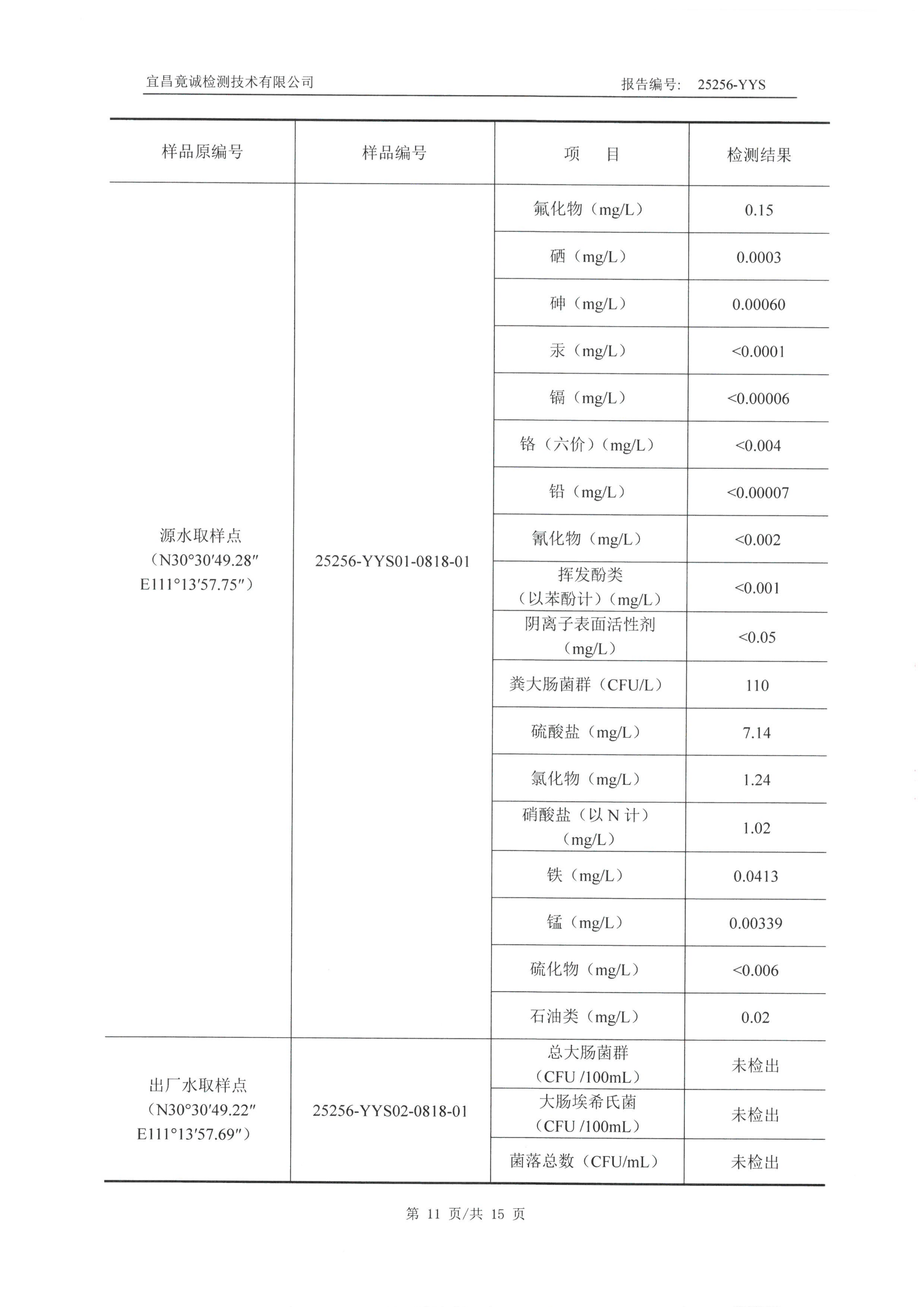 白氏坪水廠9月水質(zhì)檢測報告